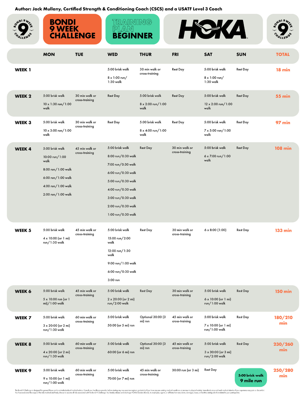 The Bondi 9 Week Challenge is your opportunity to take the first step into the world of running with the global HOKA community. Over the next 63 days, we'll help you build confidence and endurance as your progress toward completing a 9-mile (14,48 Km) run in 9 weeks. With expert coaching, daily guidance, and a beginner-friendly training plan, you'll discover what it feels like to break through limits and embrace the joy of running.
